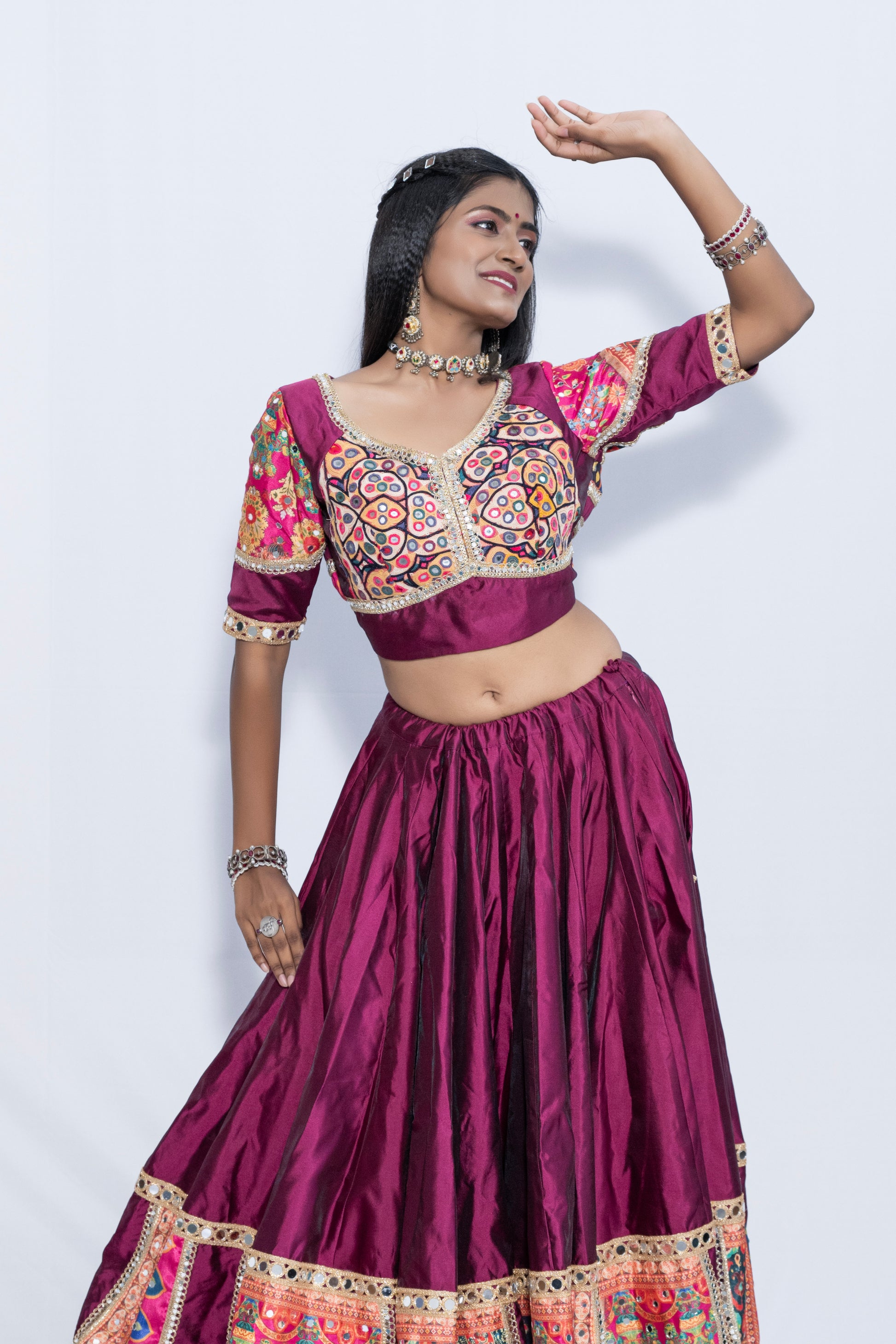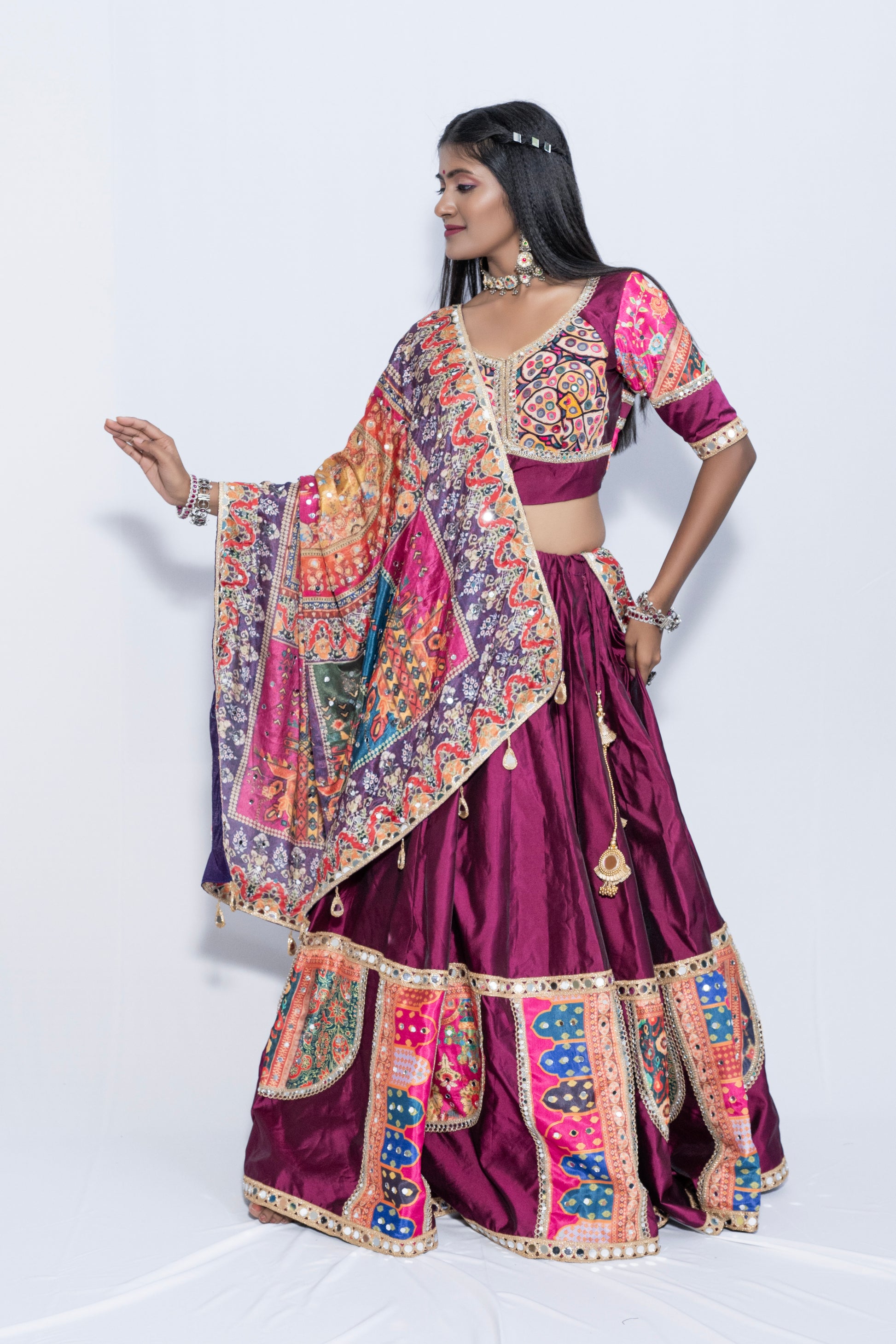 This exquisite Chaniya Choli ensemble radiates traditional charm and vibrant artistry.