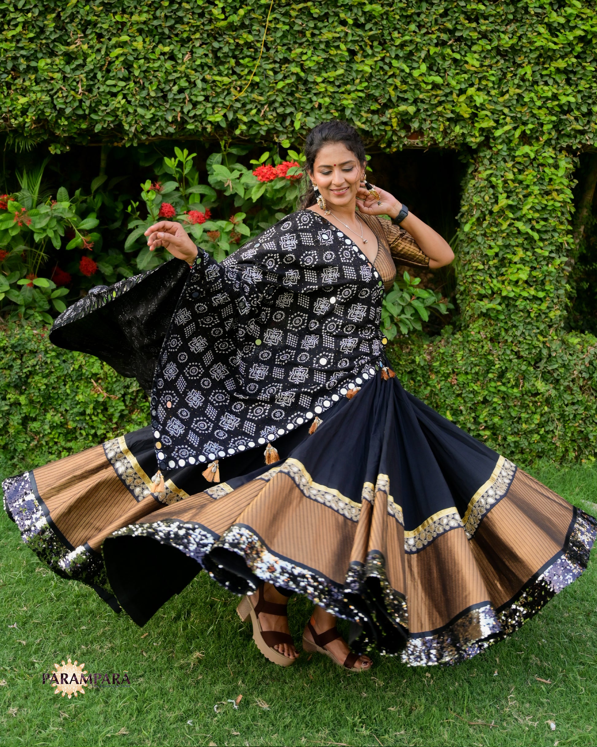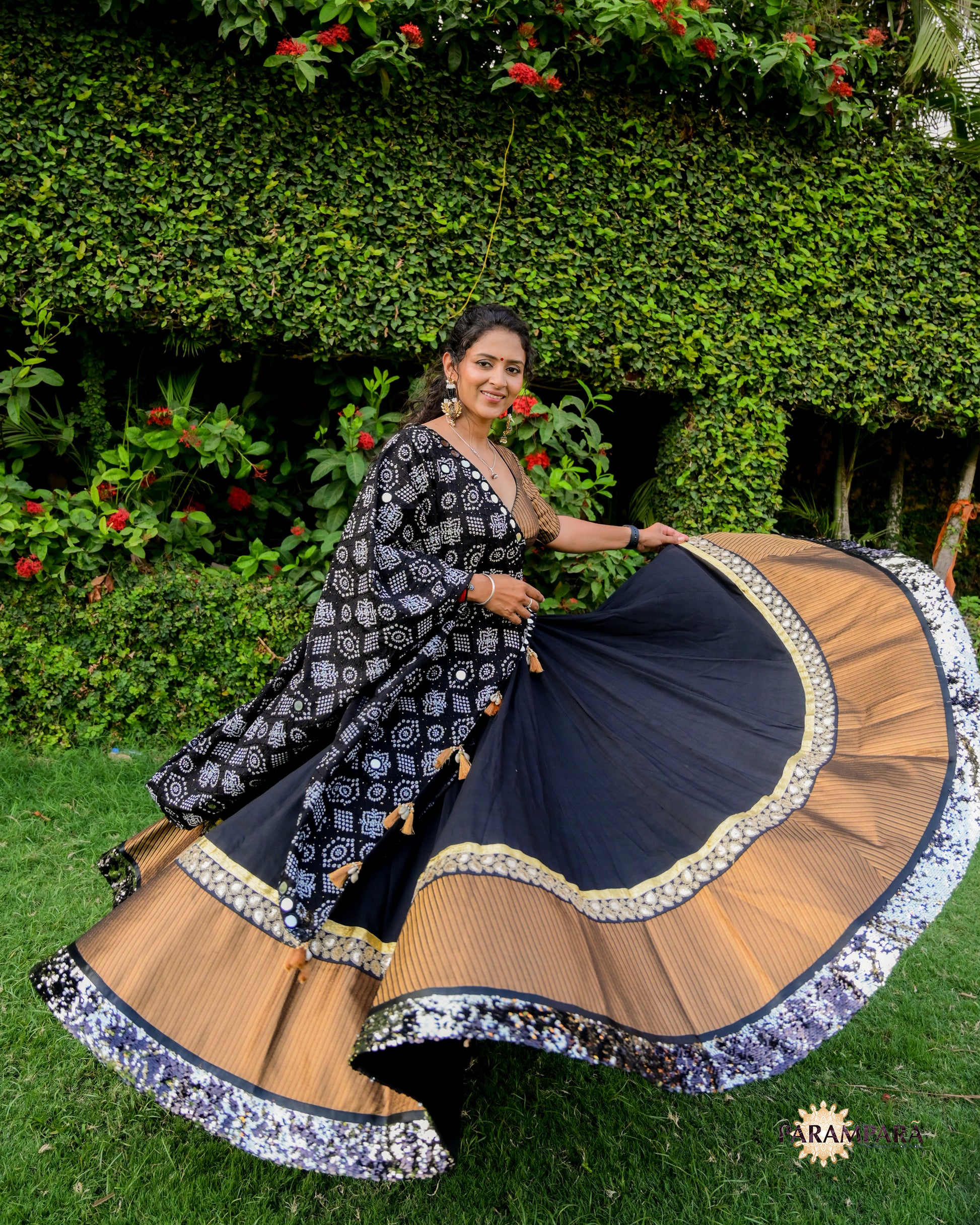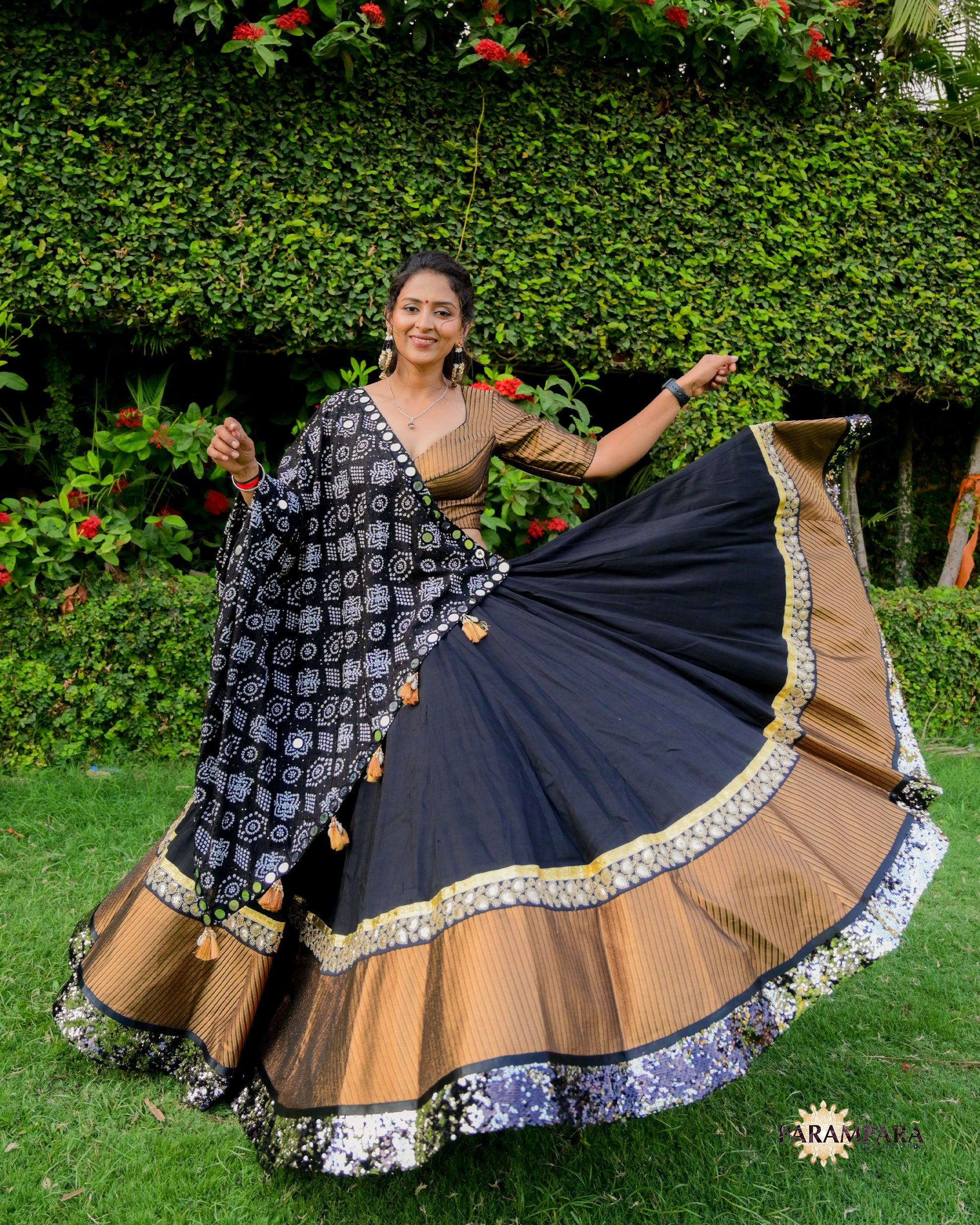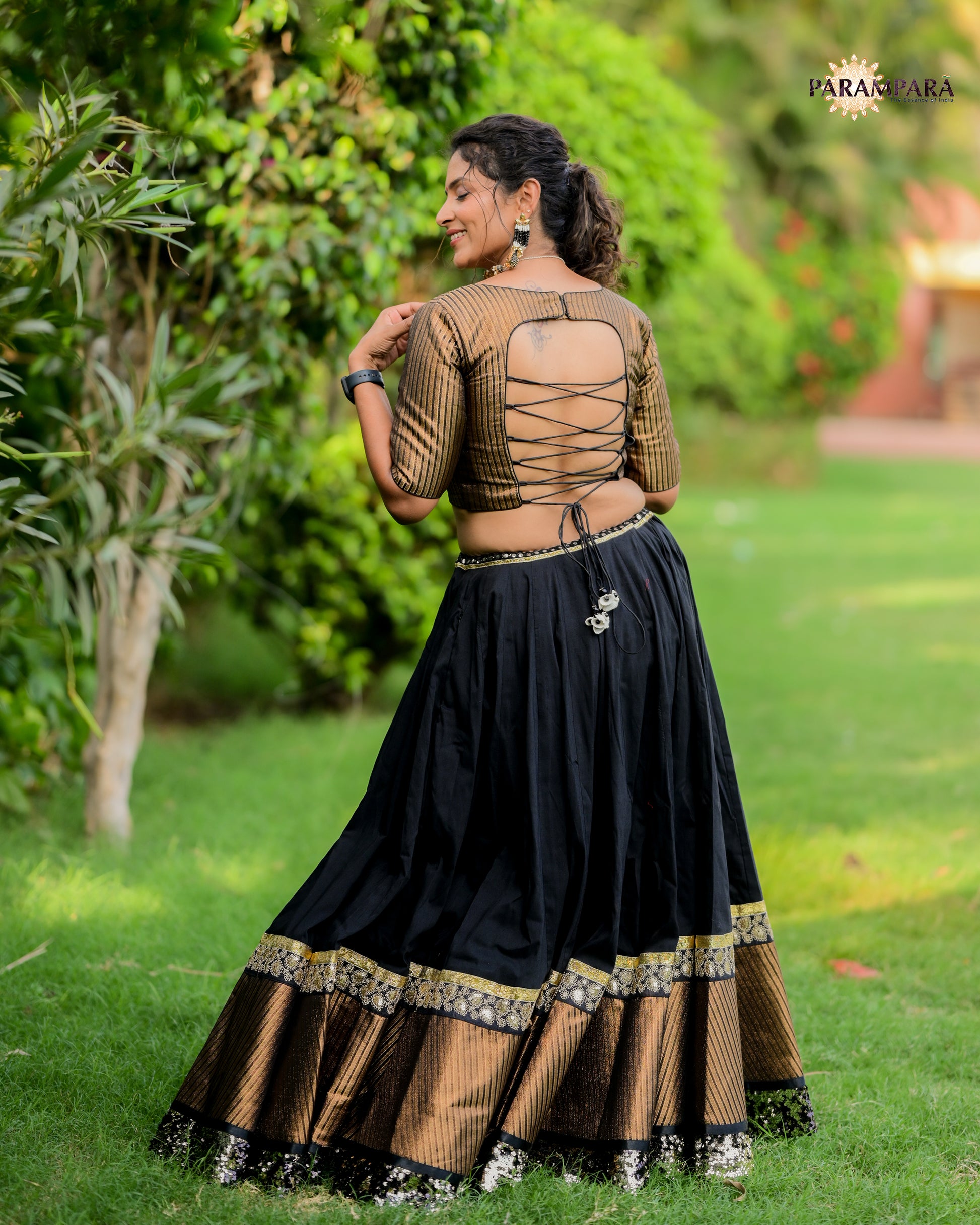 Black Chaniya Choli with Golden Border.