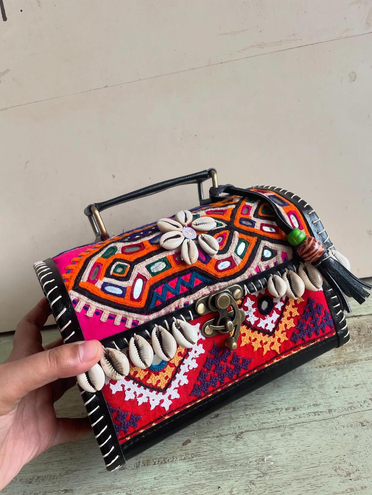 Kutchi Embroidery Banjara Design Bag with Cowrie Shells.