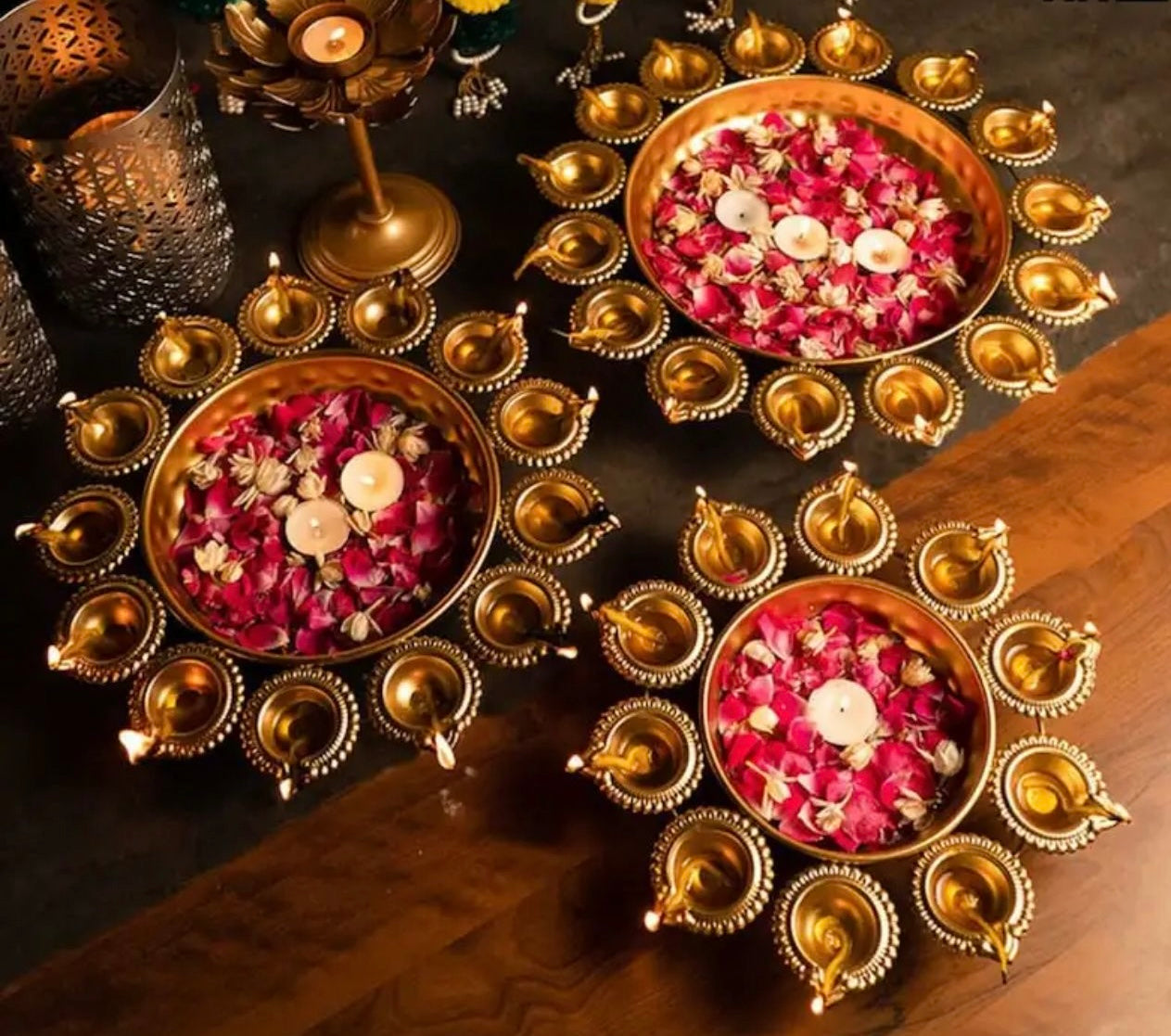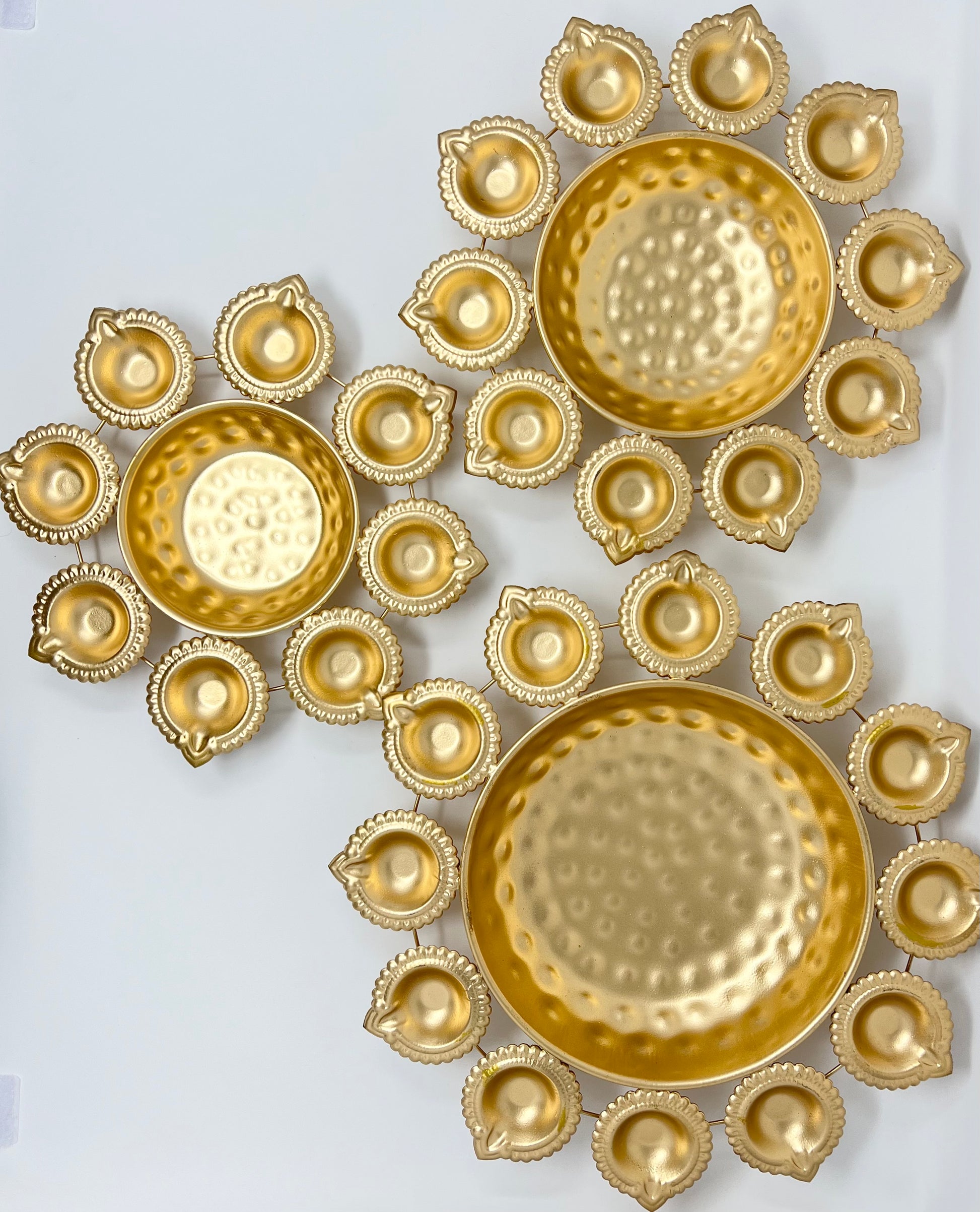 Gold metal Urlis. Set of Three.Light weight, temporary Diwali decoration.